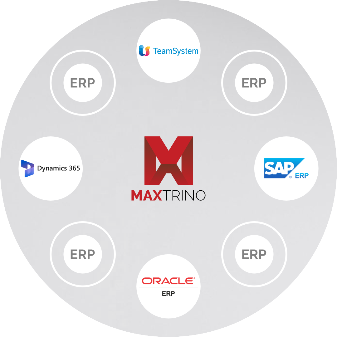 Maxtrino è multi-ERP e agnostico: non richiede la sostituzione dei sistemi esistenti.